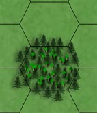 It should be noted, that the OverIsTop button has a side effect for base sprites that go outside of their hex boundaries (e.g., forest pine). If OverIsTop is set to true, it will remove all images of the sprite that goes out of the hex boundary. (In a sense, the OverIsTop button is a command that allows only the over sprite to project beyond the hex boundary. An example of this side effect is illustrated here with a forest pine hex: