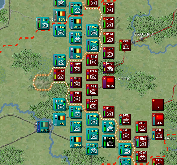 All German Armies and Panzergruppes commence Barbarossa with an Offensive posture. You can change postures at any time but there is a period of disruption as everything reconfigures. Rather than a full week which would equate to 2 turns I’ve reduced it down to a single turn (4 days) to enable greater flexibility.