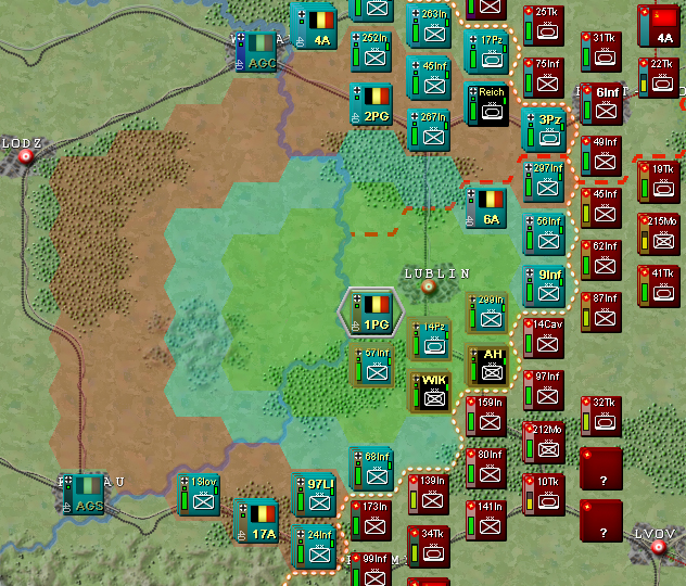 Another factor that keeps the ‘counter-shuffling’ to a minimum is having the battlefield separated into three theatres. Each is it’s own mini-campaign. You’re coordinating and allocating resources between theatres. But within each theatre the unit count is low and the ‘shuffling’ involved is manageable. To give you an idea, the Germans, in Army Group North (the smallest), have only 23 divisions in three Armies (excluding the Finns). AGC has less than 50 divisions in four Armies.