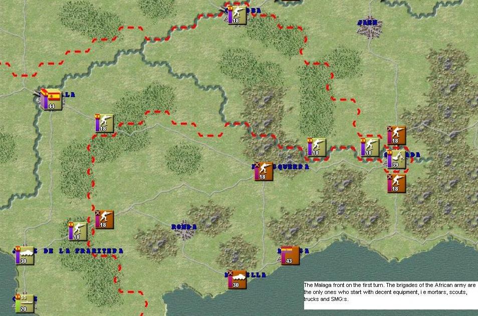 | Tags: Inter war era Description: This scenario simulates the spanish civil war between the nationalist rebels and the republican provisional government. The scenario begins on the 1st of july 1936. Each turn is 1 month long. Screenshot is with real mod activated. The scenario should be very AI-playable. Screenshot: Click for viewing full size ![]() Admin Comment: Unzipping this download will also install the Realist2 graphics files. Download: You cannot download scenarios if you are not logged in. |